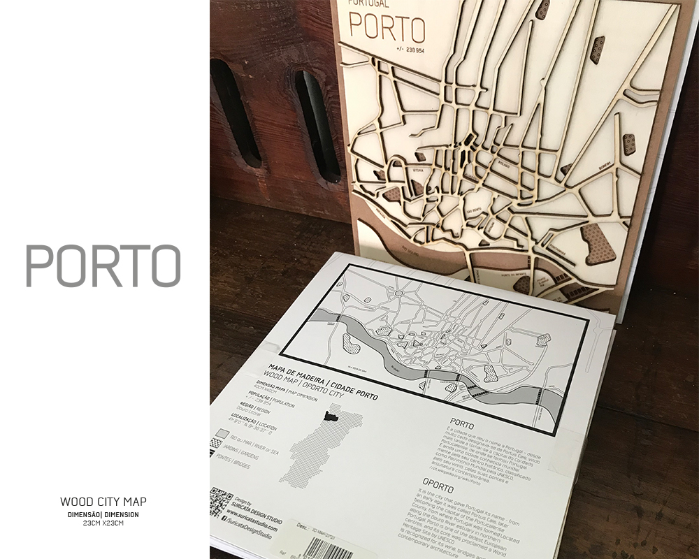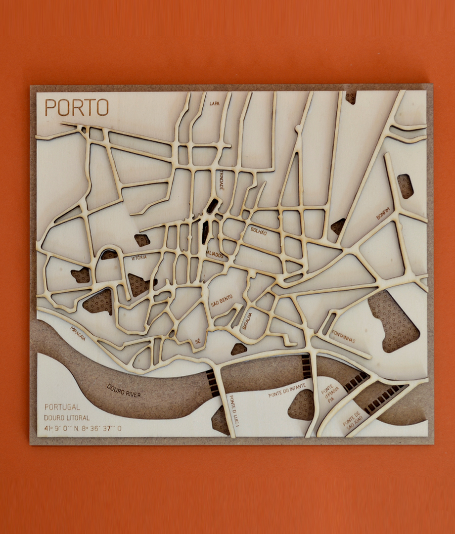 Available the map of the city of Porto, in two different formats Square (20cmX23cm) and Wide (40cmX20cm)