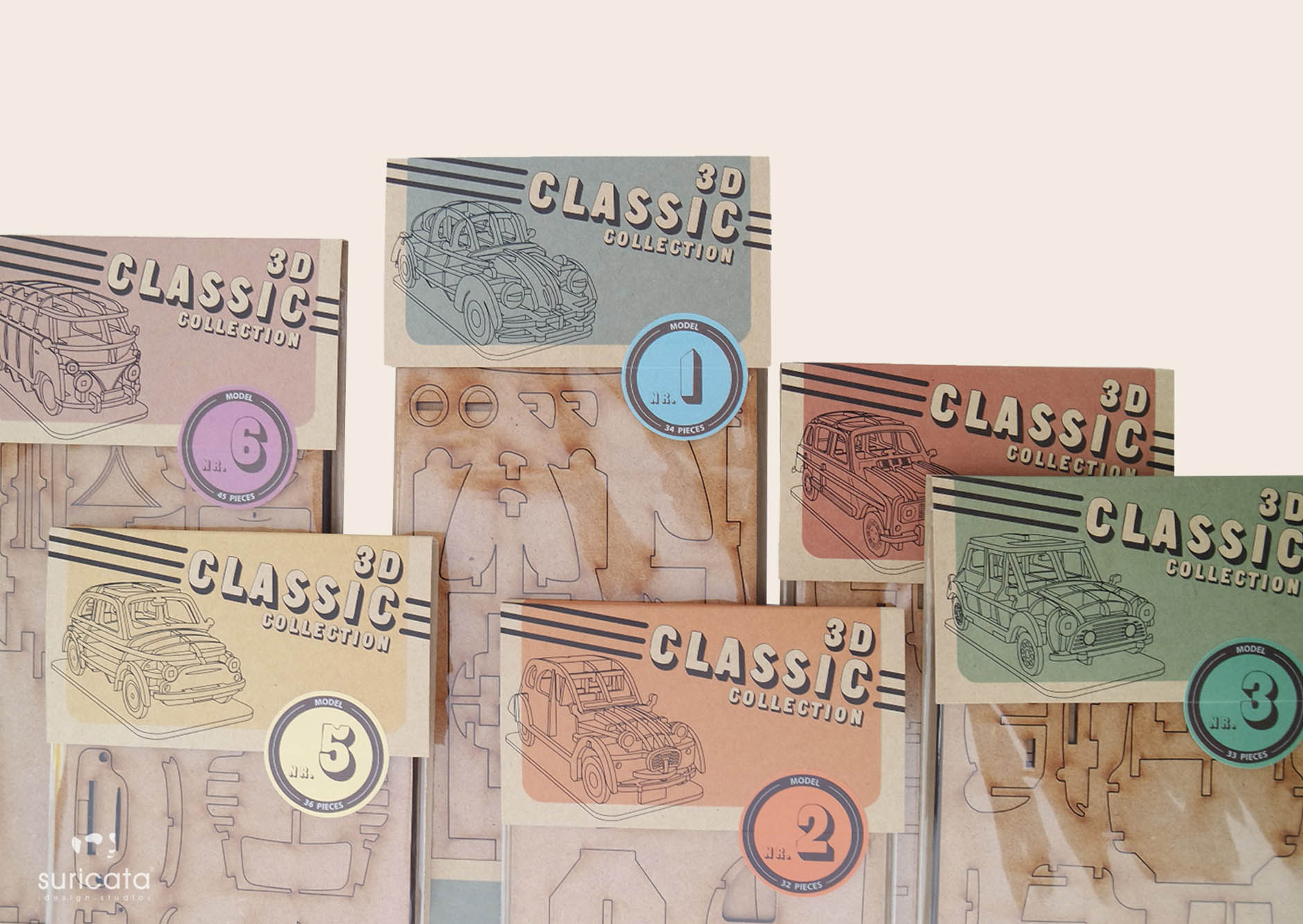 3D Classic collection, junta a vertente decorativa do produto com a vertente Lúdica e funcional, direcionada para todos os apaixonados e seguidores dos grandes Clássicos mundiais. A coleção é composta por 8 modelos distintos, todos eles numerados e inspirados em referencias de diversos modelos históricos, através de uma linguagem discreta e minimal. O Mini é uma miniatura composta por 33peças e com a referencia de modelo nrº 3. Todos os produtos estão patenteados pela Suricata Design Studio, sendo uma coleção única e diferenciadora.