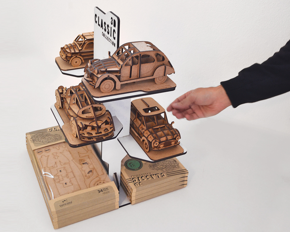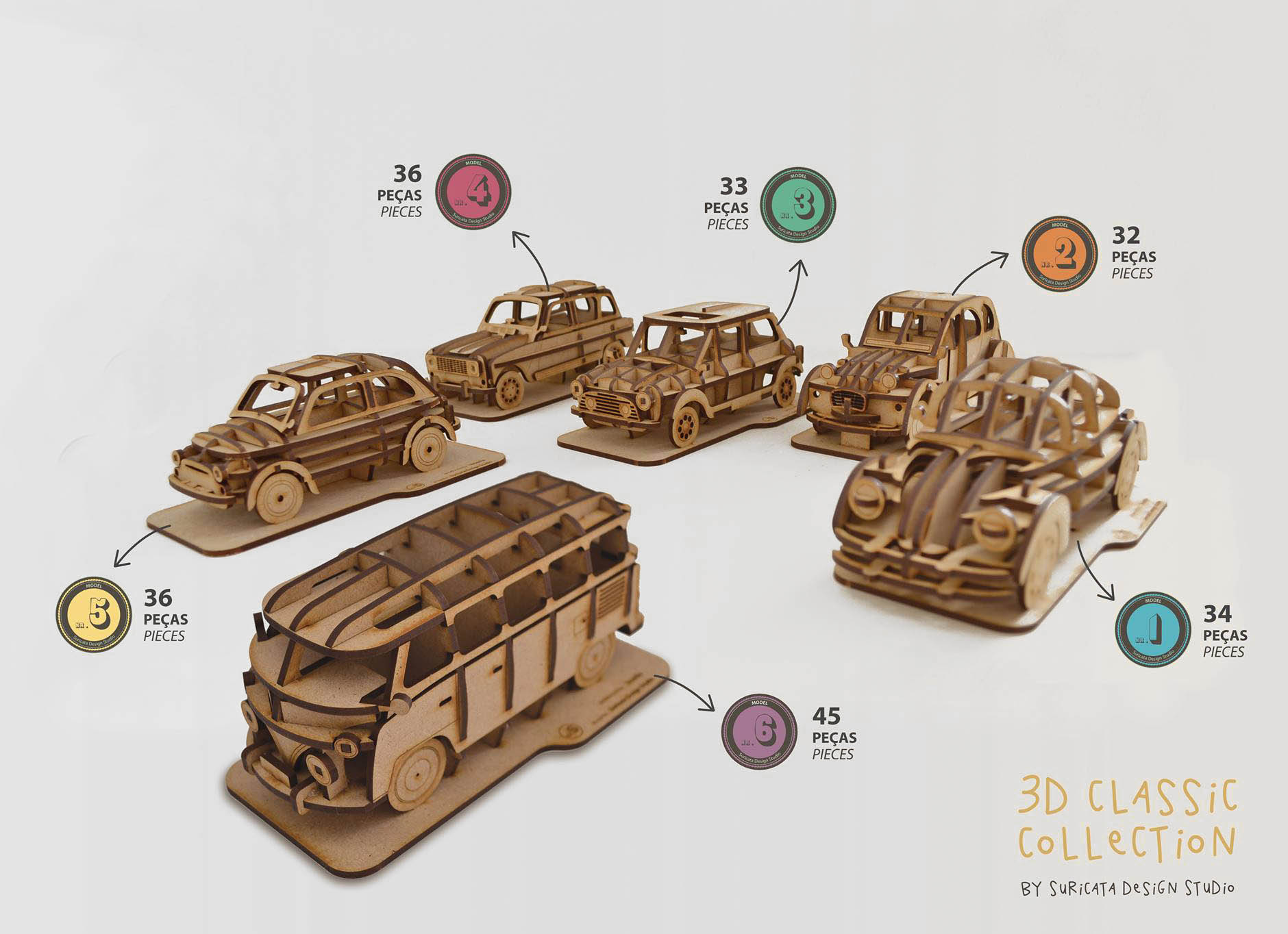 3D Classic collection, junta a vertente decorativa do produto com a vertente Lúdica e funcional, direcionada para todos os apaixonados e seguidores dos grandes Clássicos mundiais. A coleção é composta por 8 modelos distintos, todos eles numerados e inspirados em referencias de diversos modelos históricos, através de uma linguagem discreta e minimal. A Renault 4L é uma miniatura composta por 36peças e com a referencia de modelo nrº 4. Todos os produtos estão patenteados pela Suricata Design Studio, sendo uma coleção única e diferenciadora.