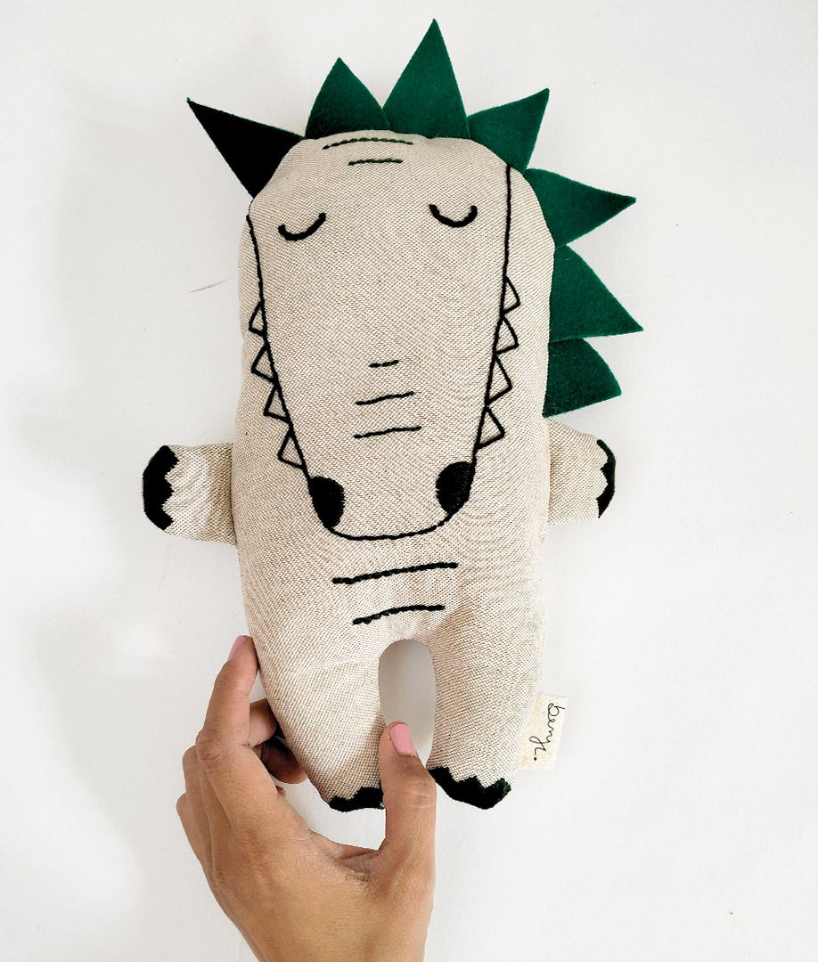 O BenjiCroco é um peluche da coleção”Benji”by SuricataDesignStudio.