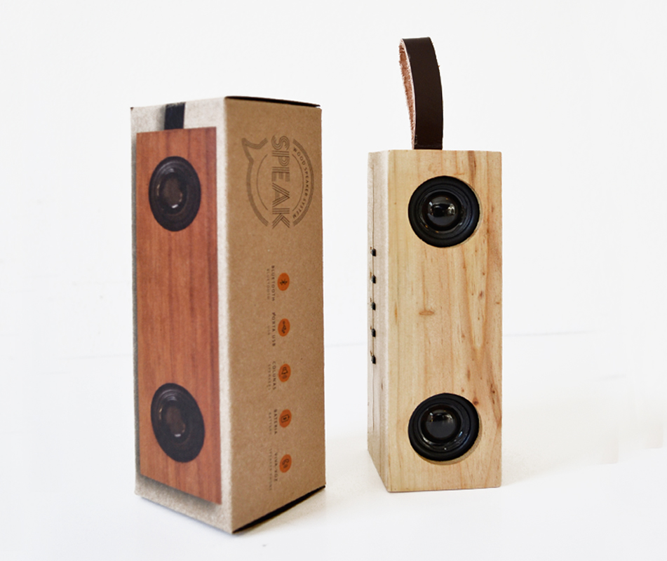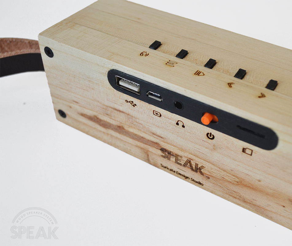 SPEAK you take music with you everywhere. It is defined by its simple and functional design, making it the choice of a perfect wood solution for your portable speaker.