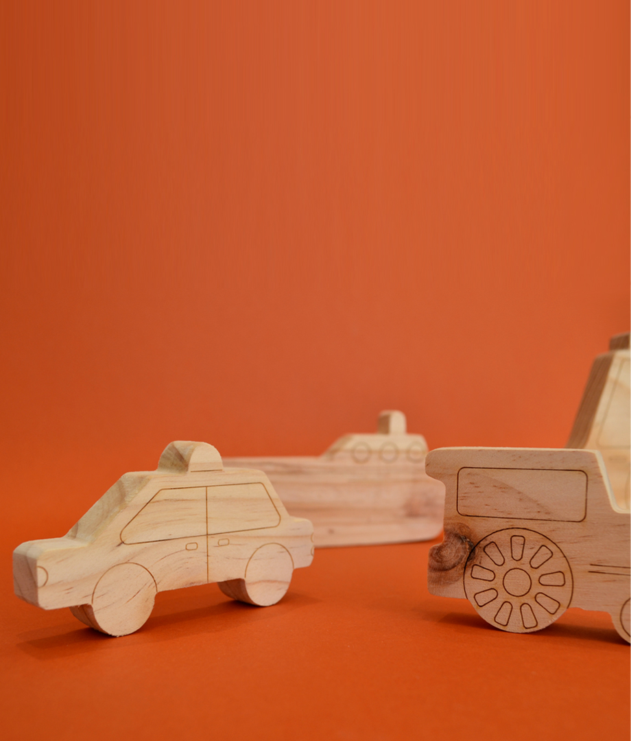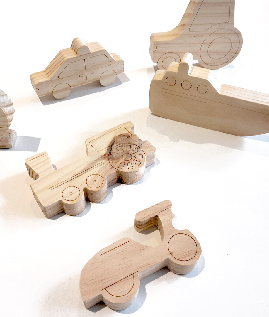 Eco friendly handmade product // Set with six different transports